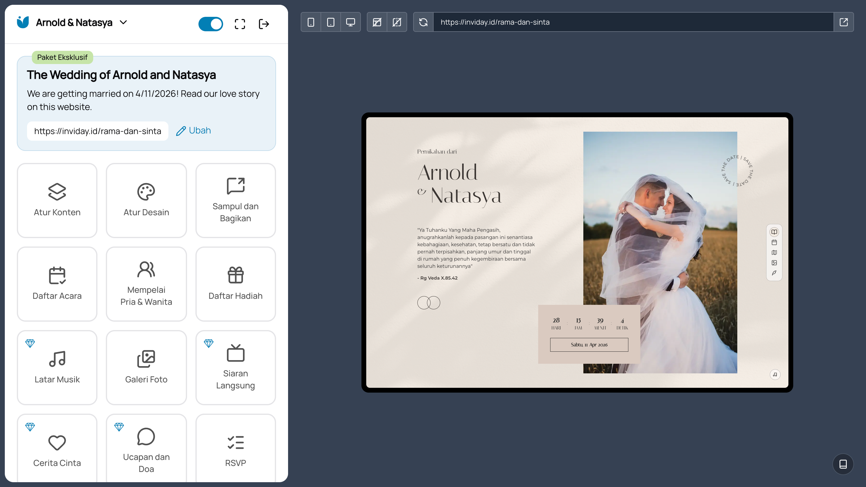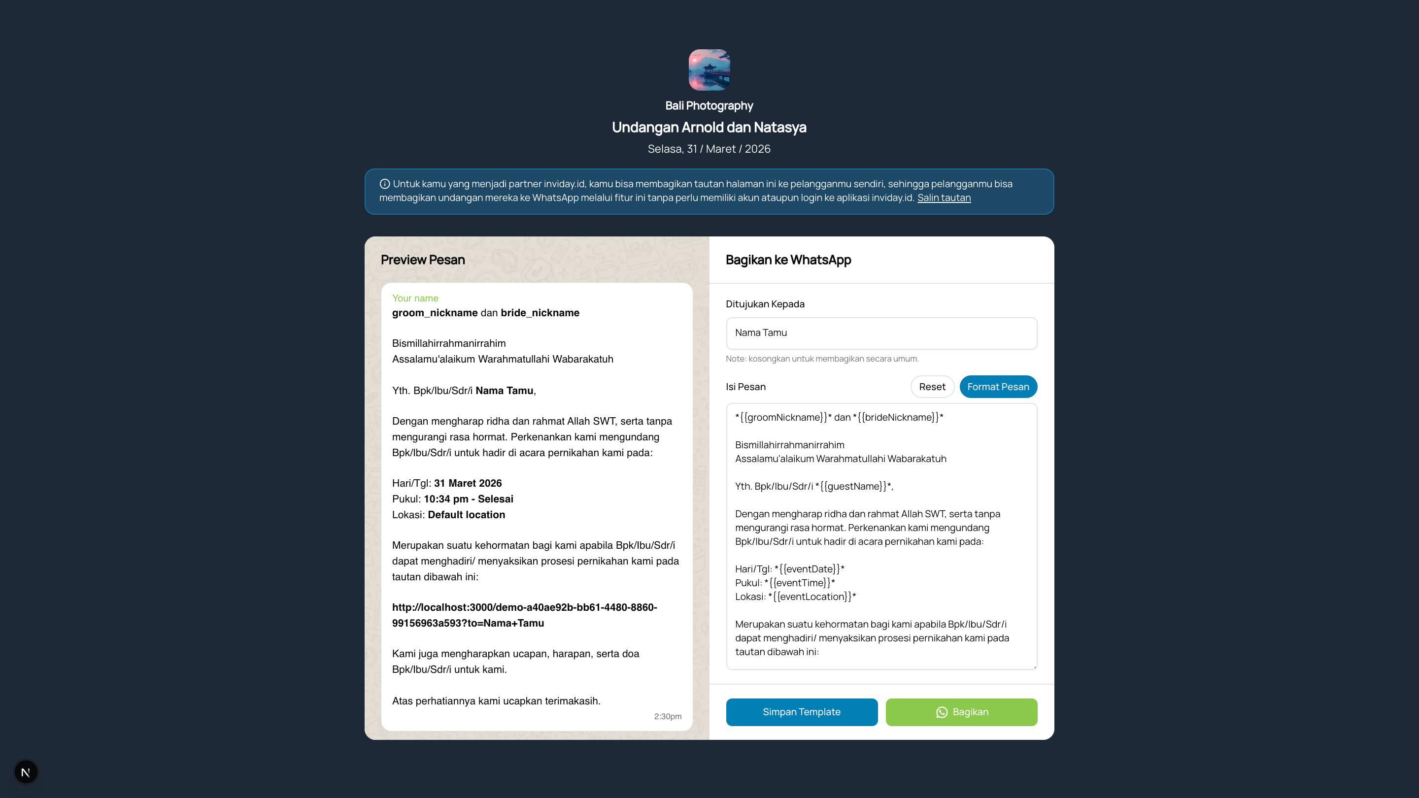 "Sangat membantu! Fitur-fiturnya lengkap, performanya ringan, dan tampilannya clean. Cocok banget untuk pasangan yang ingin undangan digital tanpa drama 😄"